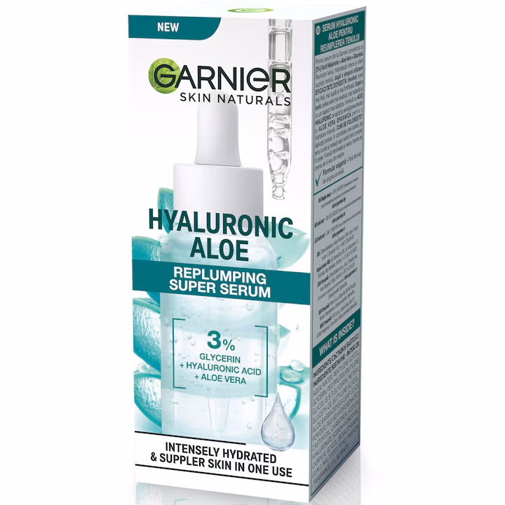 Primul ser de la Garnier concentrat cu [3%] Acid Hialuronic + Aloe Vera + Glicerină