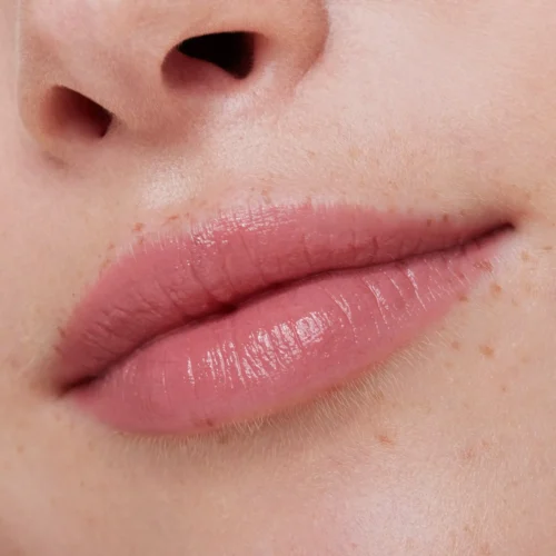 Ruj hrănitor cu înlocuitor vegan pentru colagen și aspect strălucitor.