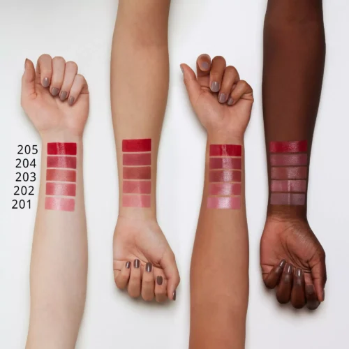 Ruj cu colagen vegan pentru îngrijire SHINE este îmbogățit cu acid hialuronic și un înlocuitor vegan pentru colagen . Nu usucă buzele, este plăcut de purtat și oferă buzelor un aspect strălucitor și o acoperire medie.